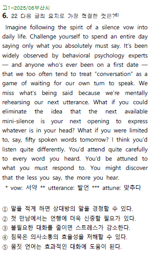 | 고2 모의고사 영어 유형별 기출 문제 지문 단어 한줄해석 05 - 22번 글의 요지 (0) | 2026.01.27 |