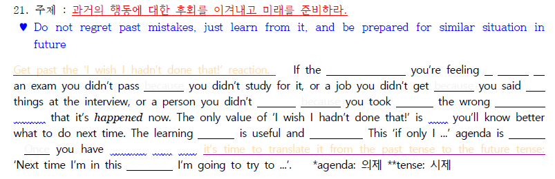 2021년 3월 고1 영어 한줄해석 원본 (자습서로 활용하세요) - By Tony Park