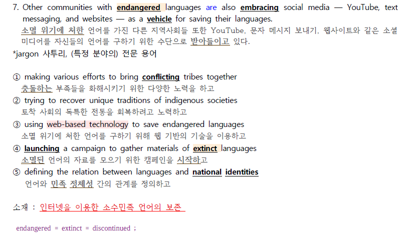 형광펜 표시된 문장은 변형 출제 가능한 주요 문장 및 주제문들입니다.