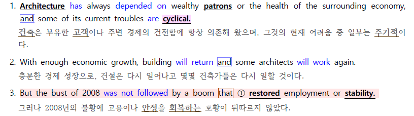 지렁이 모양 밑줄은 어법 출제 예상 표현들입니다.