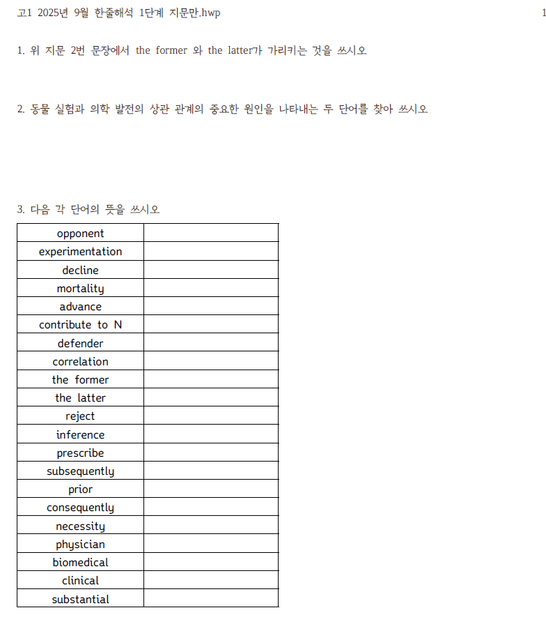 고1 2025년 9월 한줄해석 1단계 지문만.pdf