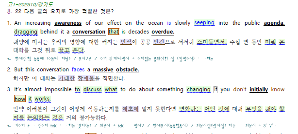 고1 모의고사 영어 유형별 기출 문제 지문 단어 한줄해석 05 - 22번 글의 요지