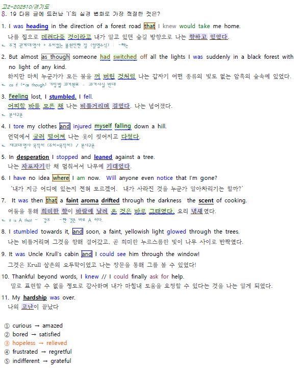고1 전국연합 학력평가 영어 19번 저자의 심경을 묻는 유형 기출 문제 및 한줄해석입니다