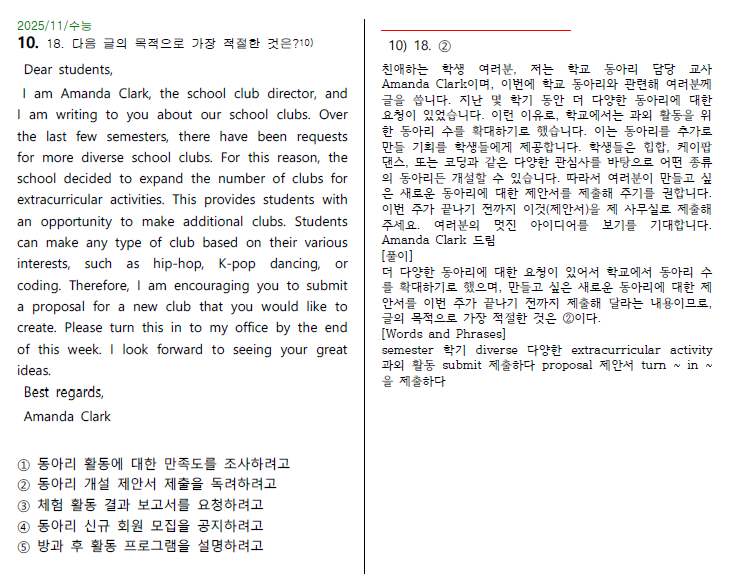 18번 글의 목적을 묻는 유형은 최대한 빠른 시간에 정답을 찾아 내는 연습이 필요합니다.